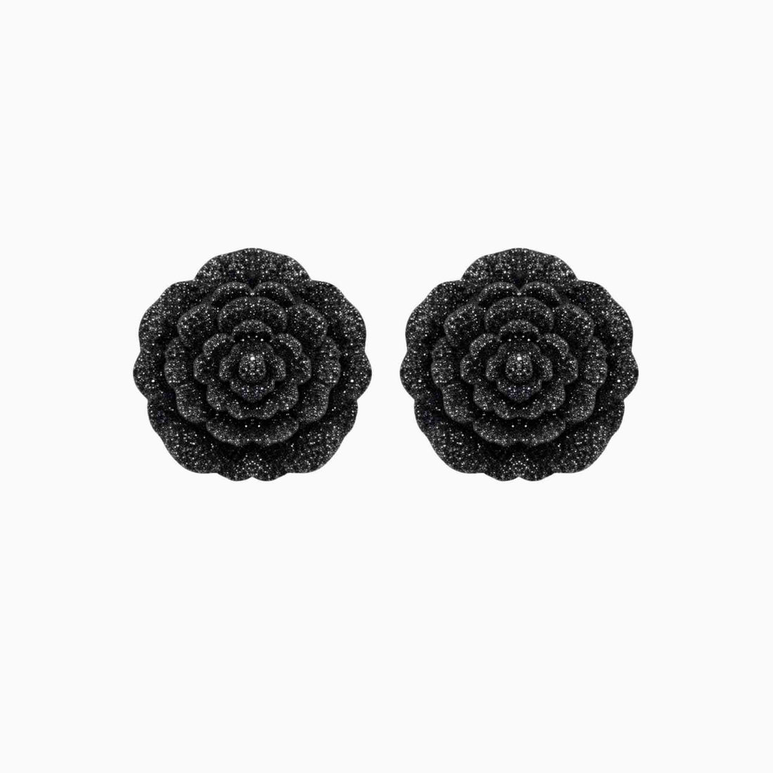 Luxurious cascading rose earrings adorned with shimmering glitter, designed to exude timeless elegance. Hand-coloured through...