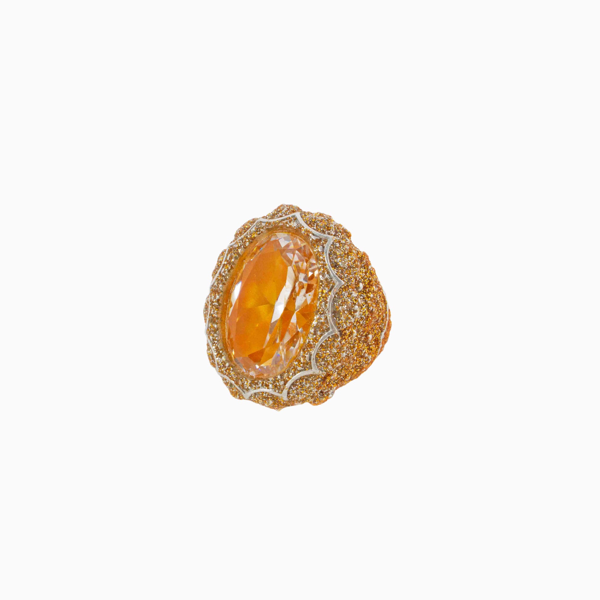 a dazzling Cubic Zirconia gemstone embraced by glittering gold textures for a timeless, radiant look.